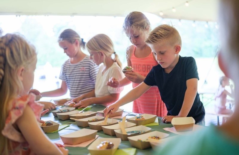 Außerdem organisiert das Animationsteam des Campingplatzes verschiedene Thementage. Beispielsweise einen holländischen Tag mit leckeren Poffertjes und Pfannkuchen. Oder eine gemütliche Hawaii-Party mit einer Schaumkanone am Pool.